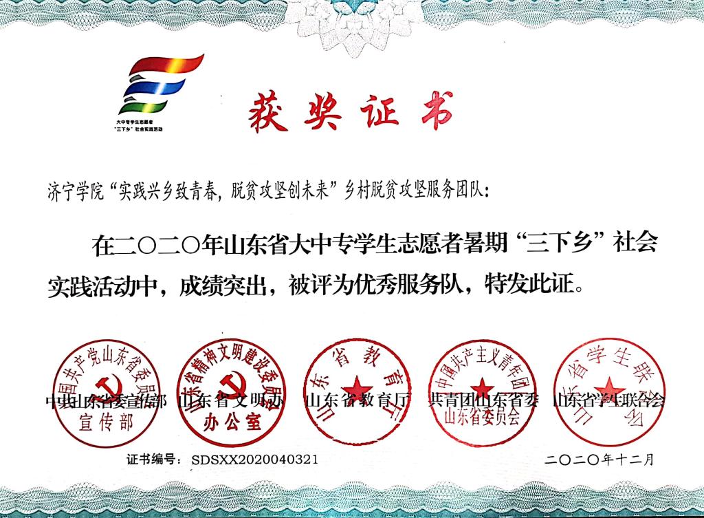 荣获山东省大中专学生志愿者暑期“三下乡”社会实践优秀服务队