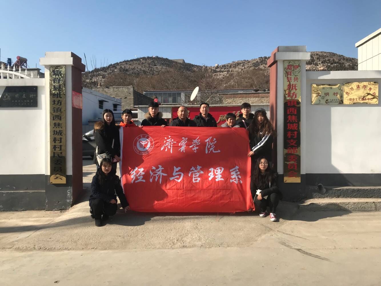 2019年1月16日,为鼓励学生走出家门,走向社会开展多样式的志愿服务活动,通过对实施地全方面的调查认识了解。我系开展关爱留守儿童,关怀空巢老人,奉献资源爱心,构建和谐社会的爱心活动。经济管理系志愿者代表队赴济宁市嘉祥县纸坊镇西焦城村开展“青春同行,益暖齐鲁”寒假社会实践活动。