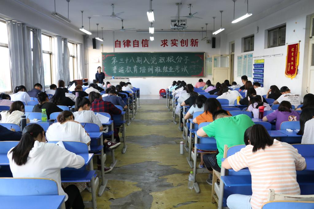 为进一步提高入党积极分子对党的理论认知水平,检验学员党课的学习情况,5月20日晚,经济与管理系第38期入党积极分子普遍教育培训班结业考试于3B#402,3B#508,3B#510教室同时进行,203名入党积极分子参加了此次考试。