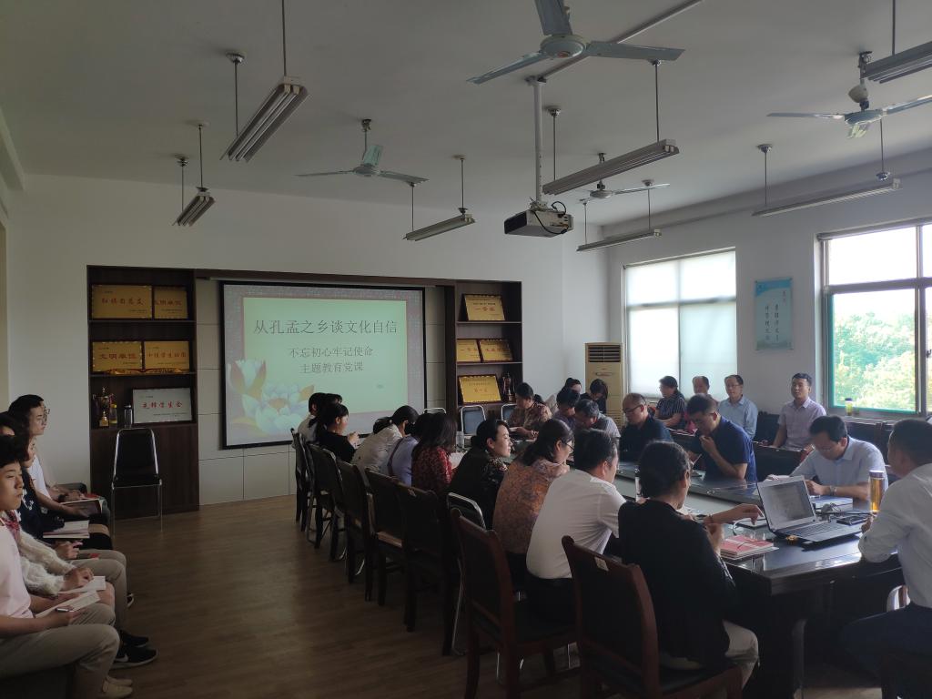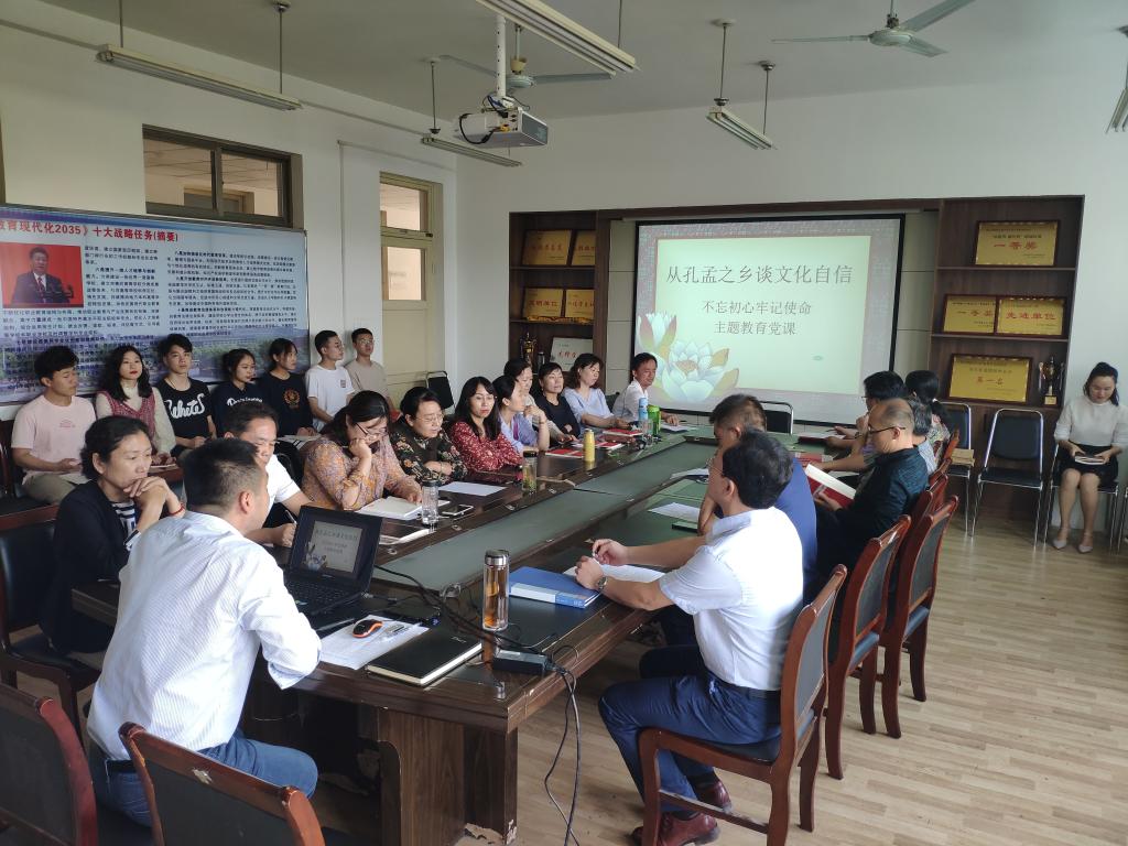 为深入学习习近平新时代中国特色社会主义思想,贯彻落实《济宁学院“不忘初心、牢记使命”主题教育实施方案》的要求。9月25日,经济与管理系于三楼会议室开展“‘从孔孟之乡谈文化自信’不忘初心,牢记使命”主题党课。本次党课由经济与管理系党总支书记陆波主讲,全体教师党员和学生党员参加本次党课。