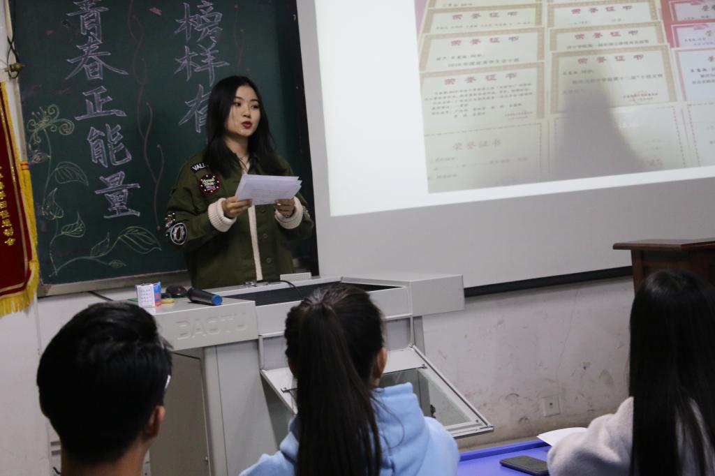 11月14日,经济与管理系(儒商学院)于3号楼B402举办“青春正能量 榜样有力量”主题团日活动。本次活动邀请我校“十佳文明大学生”代表教育系吕慧敏同学、“十佳学子”代表经济与管理系孟艺璇同学担任主讲人。