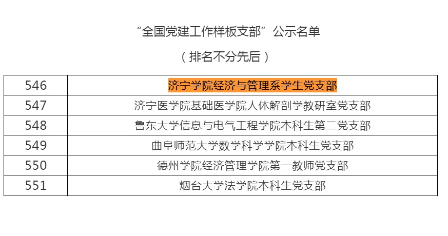 12月12日,教育部思政司发文公布了第二批全国党建工作示范高校、标杆院系、样板支部培育创建单位名单,经济与管理系(儒商学院)学生党支部入选“全国党建工作样板支部”。经济与管理系(儒商学院)党总支副书记赵家凯同志和学生党支部书记袁芬同志担任项目负责人。