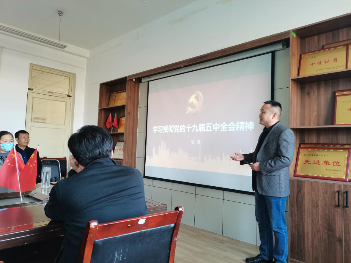 11月11日,我系于会议室开展“党的十九届五中全会精神”党课学习活动。本次党课由我系党总支书记陆波主讲,全体教职工参加本次党课。