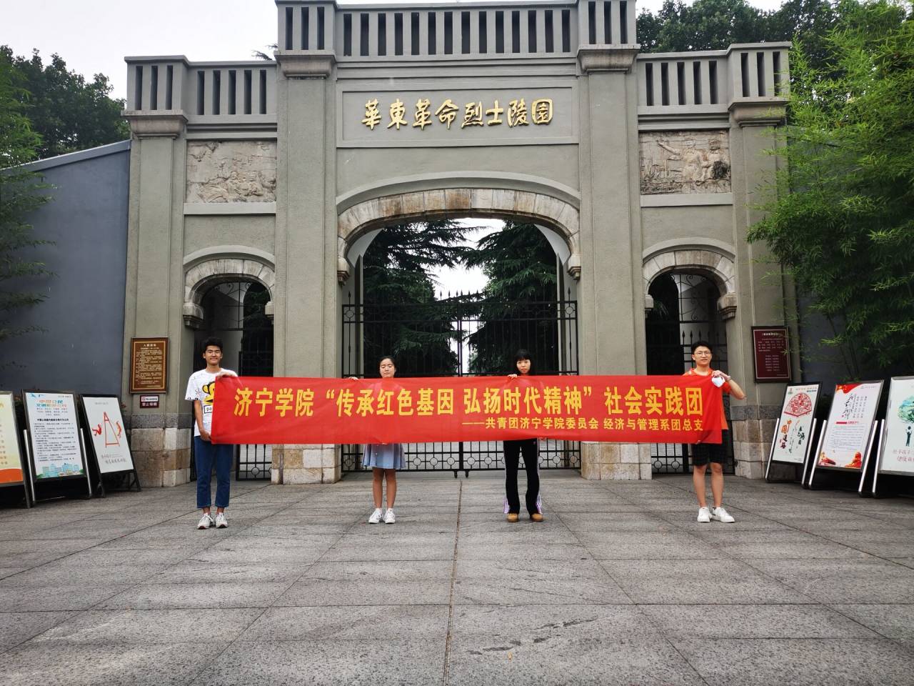 2020年7月11日,为了重温革命先辈的感人事迹,学习革命烈士的优秀品质,传承红色基因,弘扬时代精神,2018级经济学(金融与财务外包)一班学生代一辉,2018级经济学(金融与财务外包)一班学生徐榕,2019级经济学班学生李明星,2019级经济学班学生王志鹏四人来到临沂市兰山区华东革命烈士陵园开展暑期社会实践活动,追忆英雄足迹,缅怀革命精神。