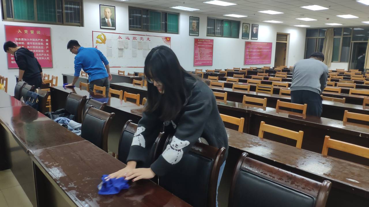 活动伊始,党员重点发展对象以及预备党员主动到图书馆进行志愿服务活动,帮助整理图书室的图书,对图书馆各个角落进行清扫,认真地对图书进行归类整理并仔细将书架上的灰尘拭去,为同学们提供一个更为干净的阅读环境。随后在整理完图书后,将卫生工具摆放整齐。大家分工明细,配合默契,齐心协力完成了此次志愿服务活动。