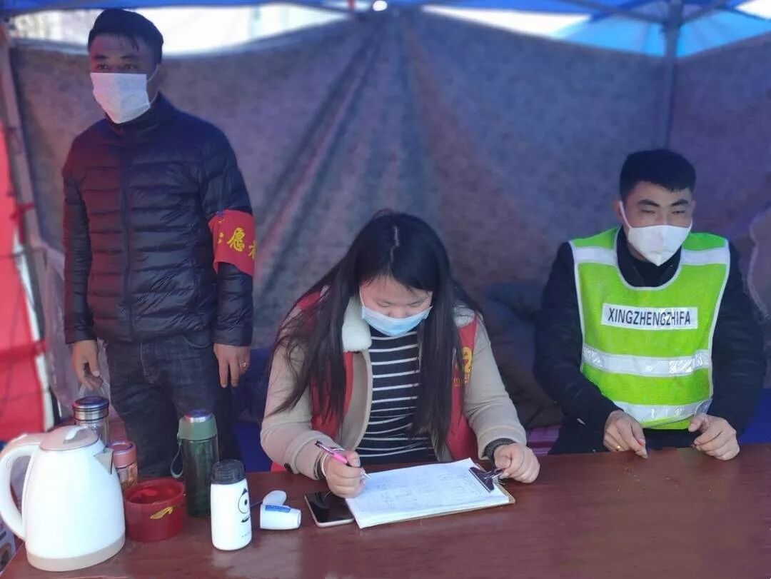2019级经济与管理系行政管理陈静秋同学自愿在安徽省蚌埠市怀远县陈集镇路口执勤,她说:为做好集镇防疫工作,我每天认真地对入镇车辆和人员做好检测、排查、劝导、登记,并耐心的向来往人员宣传疫情防控常识。
