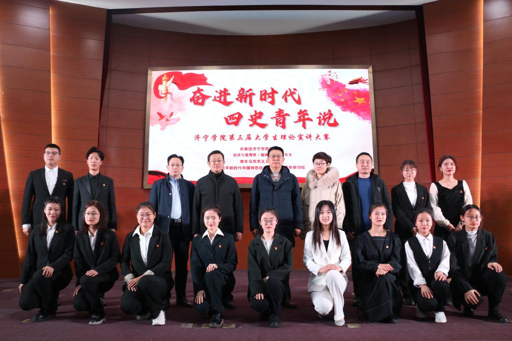 12月23日晚,由校团委主办,经济与管理系(儒商学院)团总支、青年马克思主义研究会、习近平新时代中国特色社会主义思想青年研习社承办的济宁学院第三届大学生理论宣讲大赛在理科楼报告厅举行。校党委副书记马恩出席活动,党委宣传部、团委、经济与管理系(儒商学院)等部门负责同志以及师生代表参加活动。