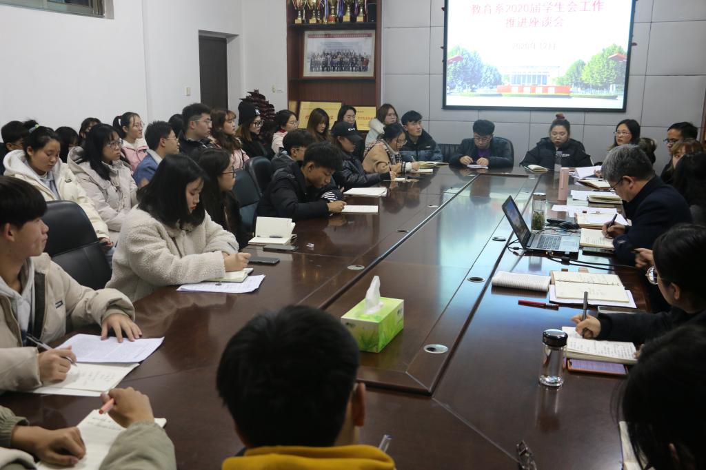 为进一步开展我系学生会的工作,提升工作能力,12月1日下午17时,在教育系二号楼A211举办了2020届学生会工作推进座谈会。教育系党总支书记乔东华,副书记刘勇,团总支书记杜鹃,各年级辅导员,学生会成员以及2020级学生干部出席此次会议。