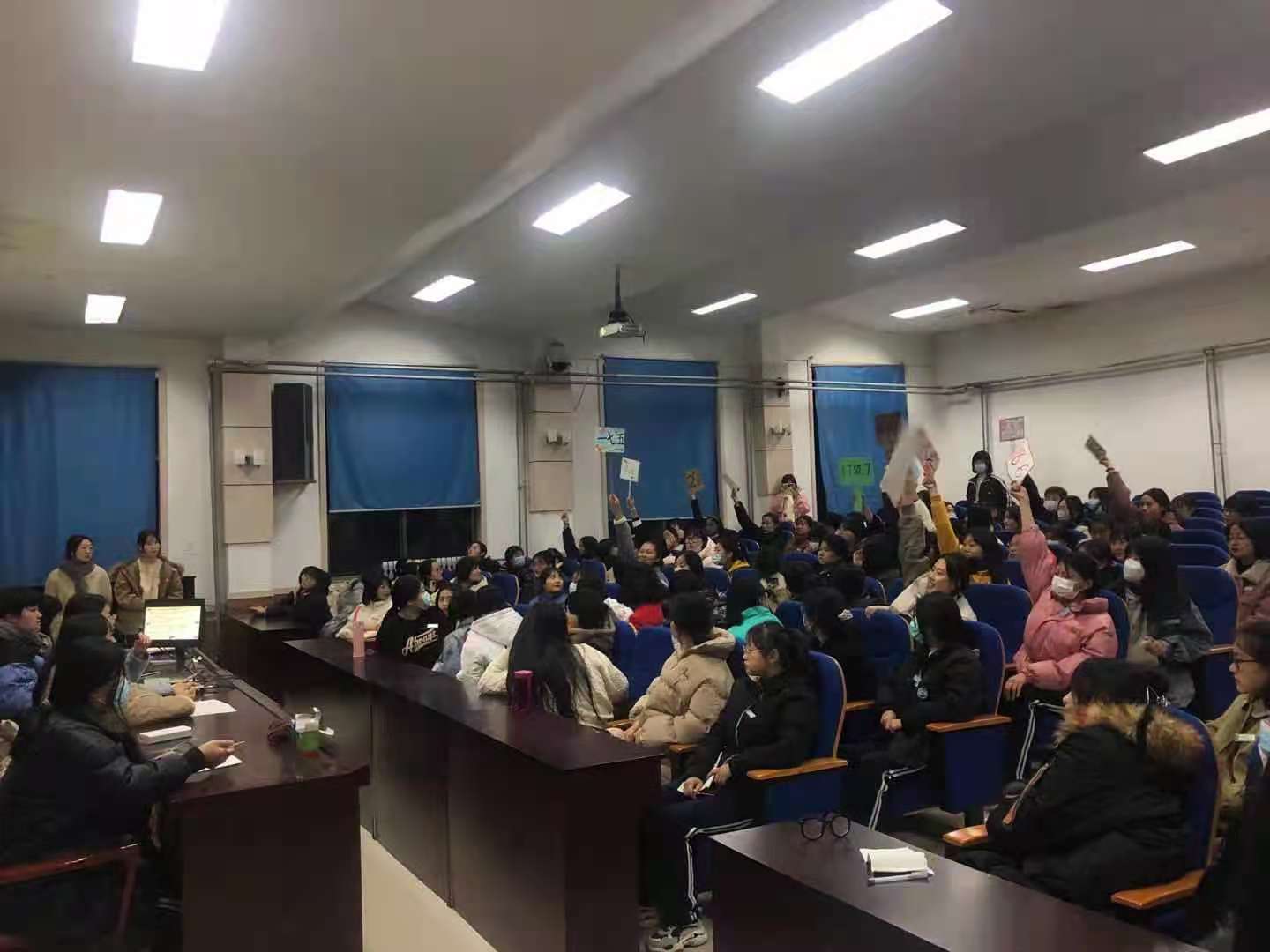 心理部负责统筹、组织整个活动工作,协调,负责活动策划书及通知工作、安排同学们有序参加活动等相关事宜。竞赛题型为选择题、判断题、简答题三种。各班参赛人员按照竞赛流程进行竞赛。活动中同学们积极答题、踊跃发言,取得了巨大的反响。