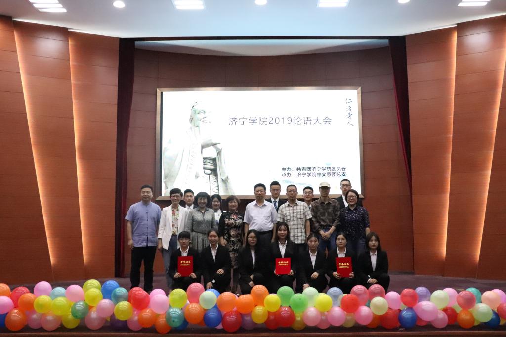 5月30日晚,由校团委主办,中文系团总支承办的“济宁学院2019论语大会”在理科楼报告厅圆满落幕。校党委副书记马恩出席活动并为获奖团队颁奖。文化传播系周新芳、中文系赵雷、田耕、王永超4位专家应邀担任大赛评委。校团委、中文系相关负责同志、各系(院)团总支负责人与学校师生400余人观看了比赛。