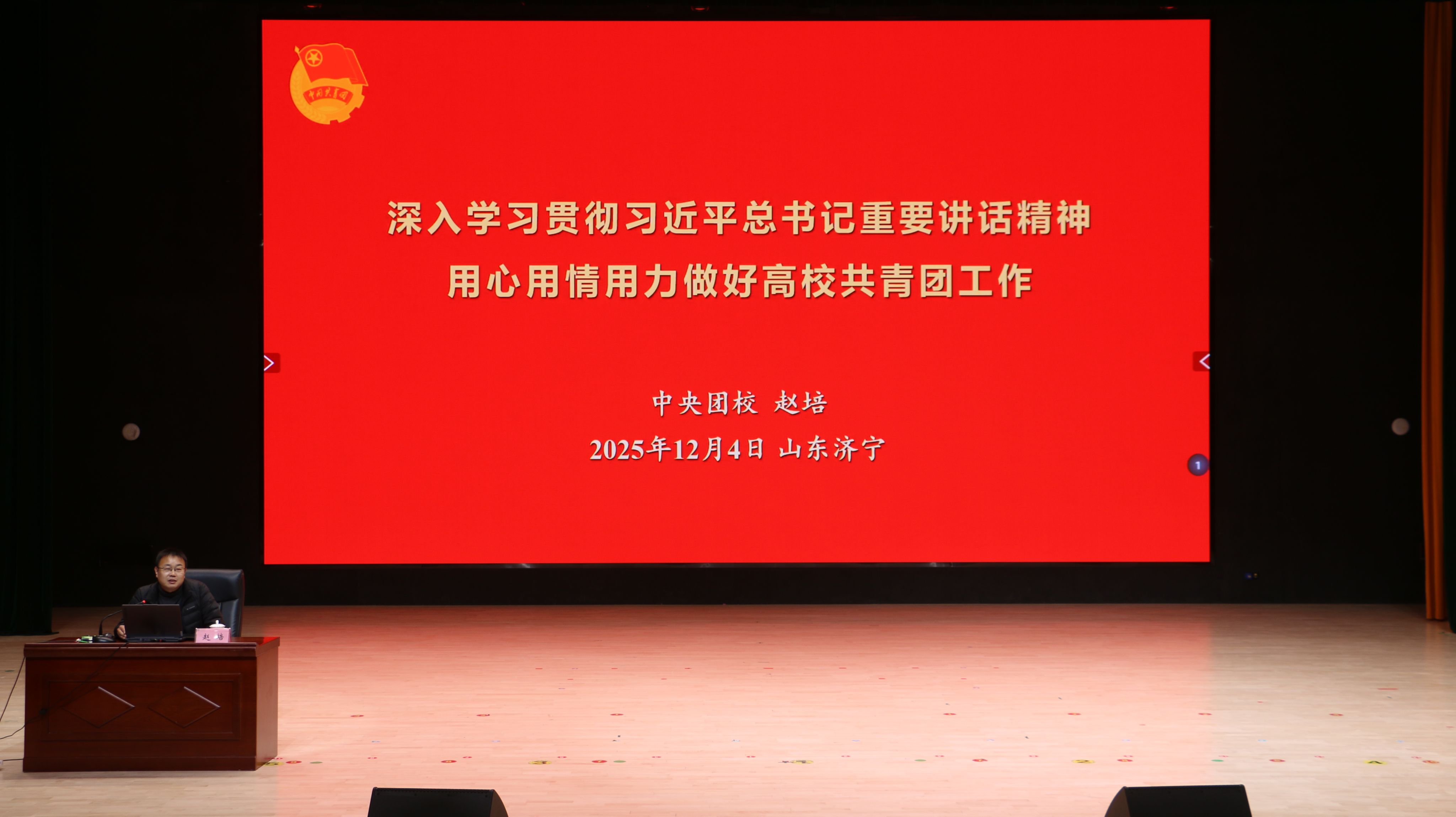为强化党建带团建育人成效,引领广大团员青年在新征程上坚定信念、奋发有为,12月4日下午,校团委特邀2008届优秀校友、中央团校(中国青年政治学院)赵培老师,在艺体中心音乐厅作了“深入学习贯彻习近平总书记重要讲话精神 用心用情用力做好高校共青团工作”专题报告。校团委全体成员、各学院团委负责人、2025年校级青马工程大学生骨干和2025级新任团支部书记等300余人参加活动。