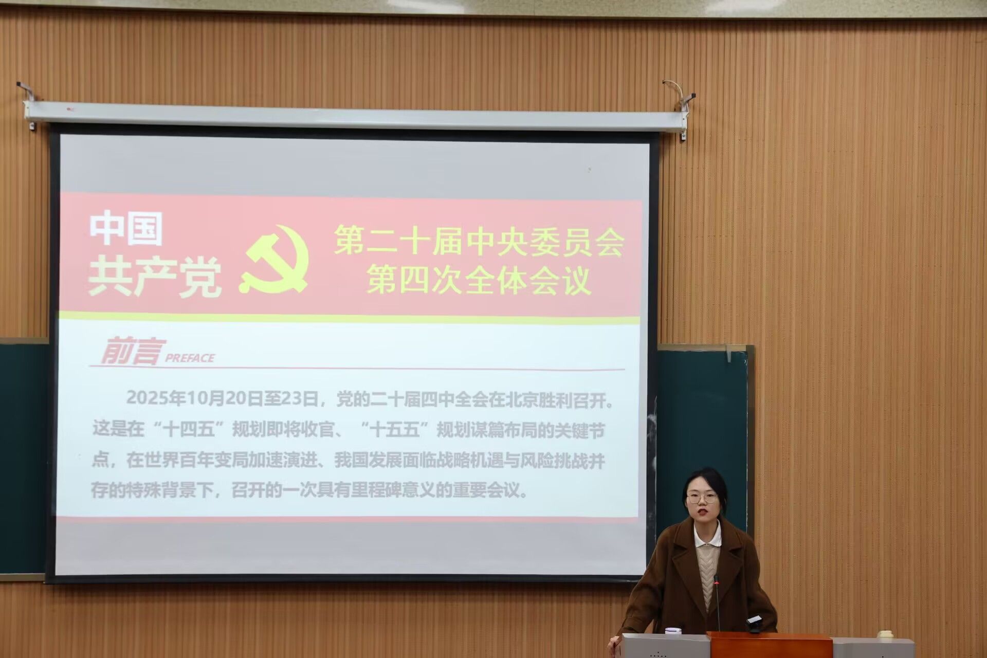 于鑫老师围绕学习贯彻落实党的二十届四中全会精神,从党的二十届四中全会基本情况和主要内容、“十四五”时期取得的重要成就等方面作了深入宣讲和系统解读。此次讲座内容丰富、逻辑清晰,既有理论高度,又有实践指导价值。在场学员纷纷表示,此次讲座让大家对党的二十届四中全会精神有了更深刻的理解,接下来会把讲座中的理论知识转化为行动动力,主动肩负起新时代青年的使命担当,在学习和实践中锤炼本领,力求成为能担当、敢作为的青年骨干,用实际行动为中国式现代化建设添砖加瓦。