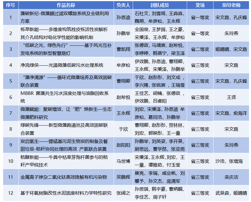 竞赛自启动以来吸引全省多所高校广泛参与,共有44所高校报名参加,提交有效作品958件。经过省内93名网评专家评议,共173件作品进入分组答辩和专家会评环节。决赛采用“实物演示+分组答辩+专家提问”的综合评审模式,经过现场比拼,资源环境与安全工程学院孙恩迪的作品《藻碳新纪——微藻膜过滤双螺旋系统及全链利用方案 》、孙鹏举的作品《栎萃新能——多维度构筑栓皮栎活性炭解析其介孔结构对电化学性能的影响机制设计说明书》获省级一等奖。