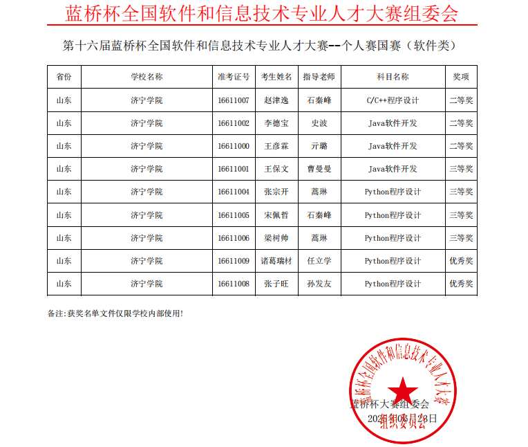 6月15日,第十六届蓝桥杯全国软件和信息技术专业人才大赛全国总决赛在全国30个省市自治区,共58个高校赛点同步举行,2万余名顶尖选手在C/C++、Java、Python、Web应用开发等9大竞赛科目中展开角逐。6月23日,大赛组委会公布成绩,我校计算机科学与工程学院共有9名学子获奖,其中二等奖3项,三等奖4项,优秀奖2项;物理与电子工程学院学生孔维涛在“单片机设计与开发”赛道荣获三等奖1项,获奖数量取得历史新高。