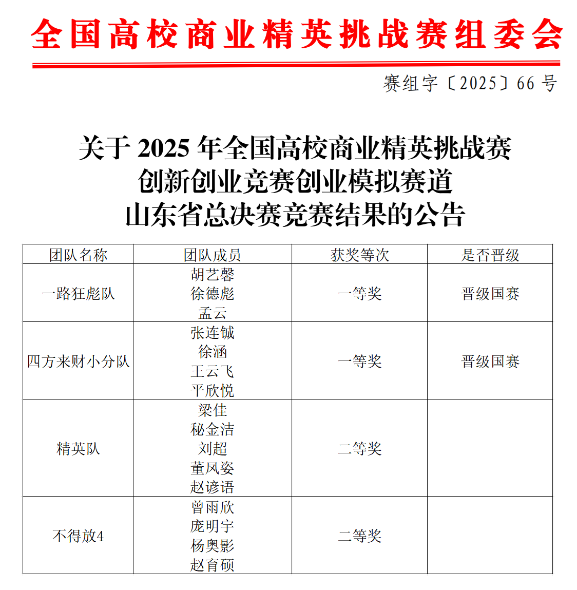 近日,中国国际贸易促进委员会商业行业委员会、中国国际商会商业行业商会和中国商业经济学会联合主办的2025 年全国高校商业精英挑战赛创新创业竞赛创业模拟赛道山东省总决赛落下帷幕。我校经济管理学院首次参加此赛项取得亮眼战绩,4支代表队从激烈竞争中脱颖而出,勇夺省级一等奖2项、二等奖2项,其中2支队伍成功晋级全国总决赛。